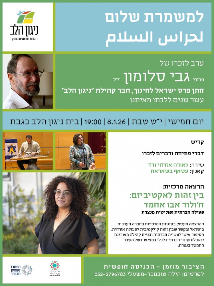- הזמנה לפעילות ניגון הלב- למשמרת שלום.- פרטים נוספים לחצו כאן