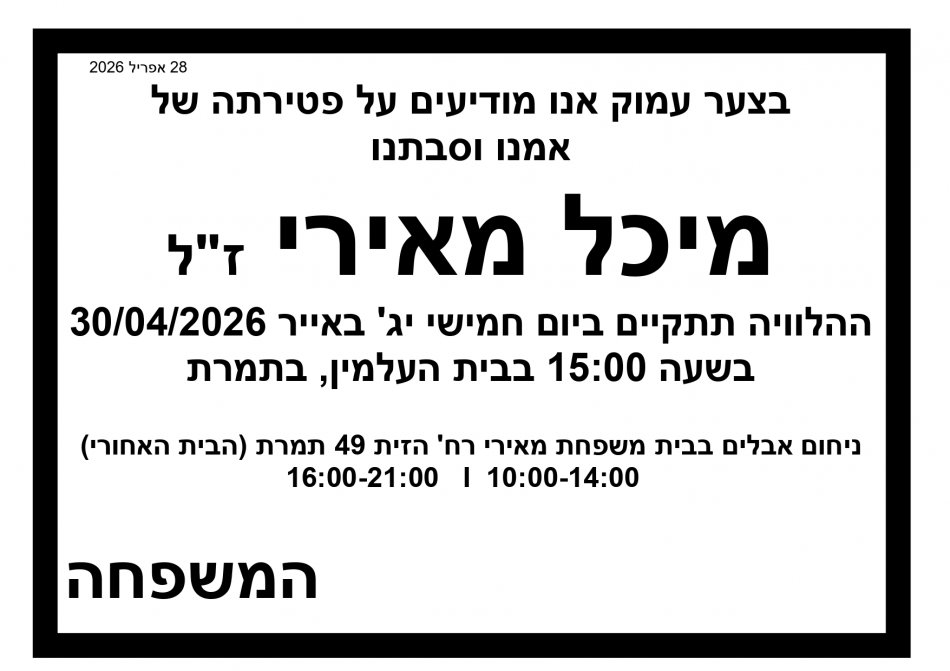 הודעות מבית המועצה 28.04.26