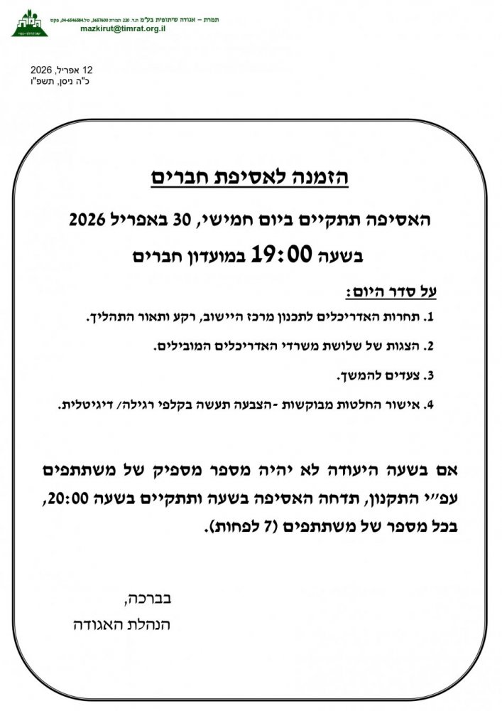 *הזמנה למפגש הסברה ואסיפת חברים - תוכנית מרכז היישוב